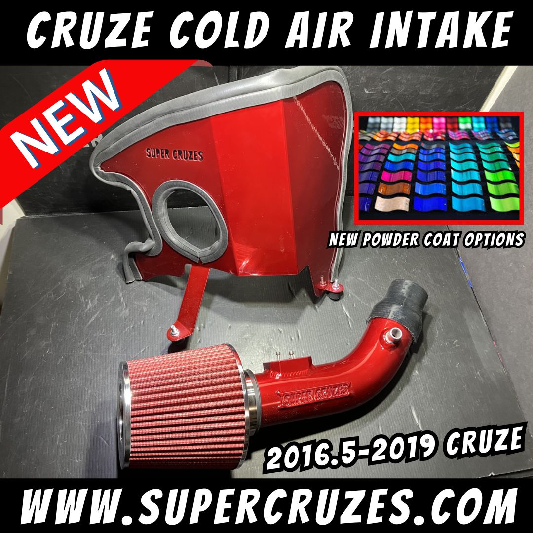 New exciting colors and products for 2025. You can now choose prismatic powders powder coat colors for all of your metal parts. We also make custom cold air intakes for the 2016-2019 Cruze. We offer this service for all the intakes on the website but I wanted to show off the new Gen 2 set up. This is Metallic Lolipop Red.