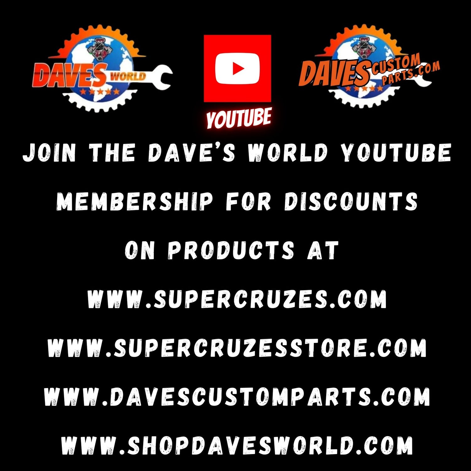 Hello everyone. I am David. Everyone knows me from the Dave's World YouTube channel. I started the Dave's Custom Parts website to provide a place for people to contact me and purchase the parts they watched me make on my YouTube channel. I created a YouTube channel membership. If you are part of the membership, I provide discounts on parts listed in this website.