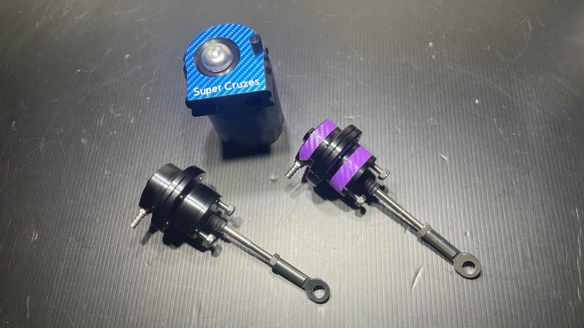 Many wastegates get weak over time and your car starts to feel sluggish. This is because your turbo is not making boost like it used too. The new upgraded wastegate will fix that problem. You can order the wastegate in any color combination you like with custom wording as well. All Super Cruzes / Dave's World wastegates come with a lifetime warranty. The preload is set for you. Simply remove your old wastegate and install mine. This wastegate is built for the 2016-2019 CRUZE. When you order this wastegate I will personally build it for your cars boost and tune level. No tune is required and I will personally customize it myself. If there is an option you do not see please email customcruze@gmail.com