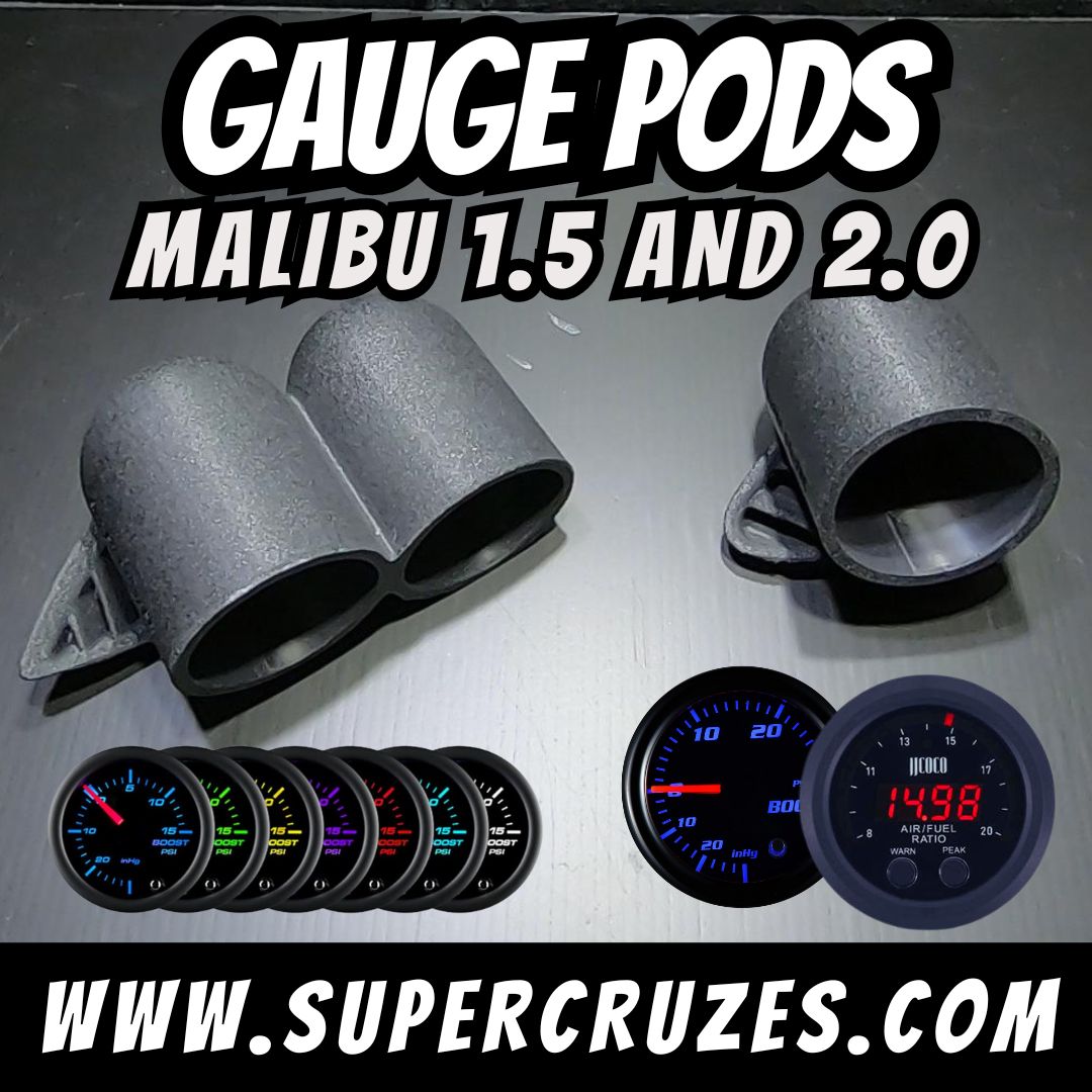 These fit 1.5 and 2.0 powered Malibu's. I have several options available. I will try and make this simple for everyone. I make my own custom gauge pods for many cars. But when I came to the Malibu I do make them. But I realized a friend of mine makes a Pillar pod already. I added his Pillar pod to my web site with my custom pods. It does cost allot of money to offer these but they are a high quality part. Buying these supports both of us.